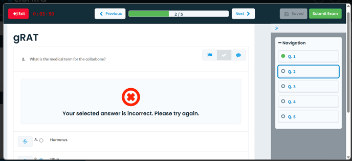Once all questions are answered, click the “Submit Exam” button. A confirmation message will appear to confirm that the exam has been submitted.